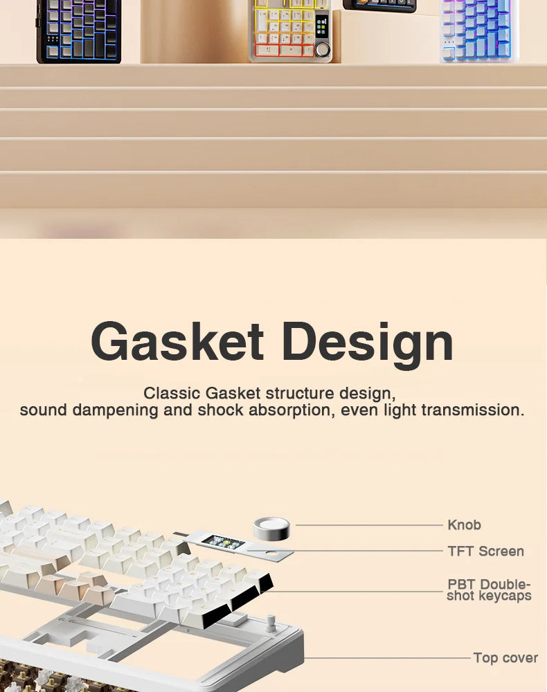 AULA F108pro Wireless Bluetooth Keyboard Macro Gaming keyboard Gasket Hot-swap Full Size Keyboard with TFT Smart Display