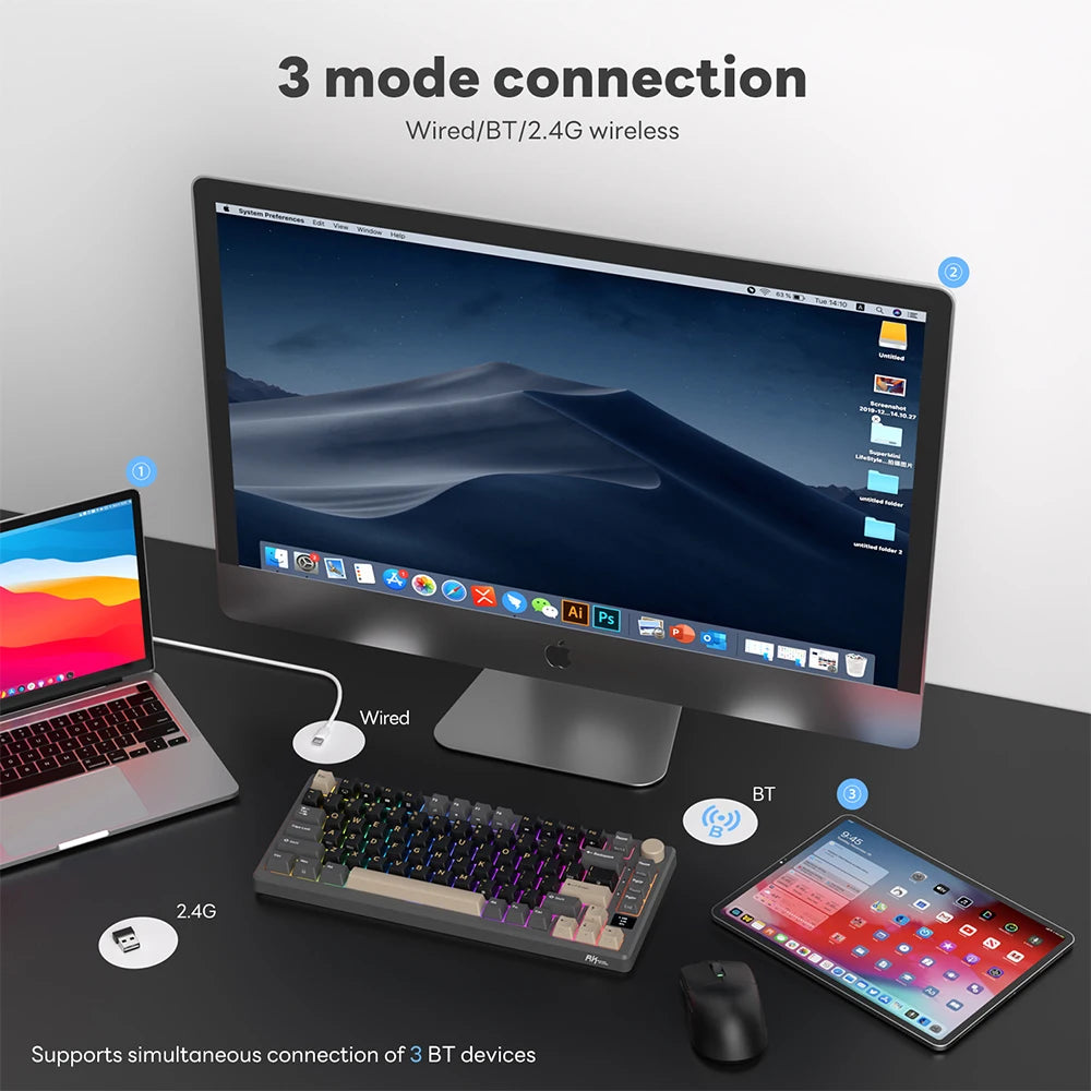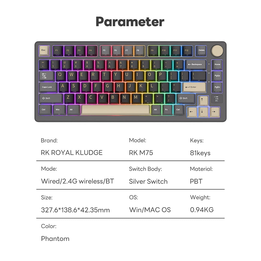 RK ROYAL KLUDGE M75 Gasket Mechanical Keyboard 2.4G Wireless/Bluetooth/USB 75% RGB Hot-Swappable Gaming Keyboard with Display